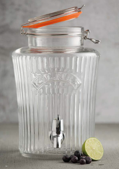 Słój szklany Kilner Vintage 8 l z pokrywką i kranem to elegancki i funkcjonalny zbiornik do serwowania napojów, inspirowany klasycznym, vintage’owym wzornictwem marki Kilner. Żebrowane ścianki nadają mu wyjątkowego charakteru i sprawiają, że doskonale prezentuje się na stole podczas przyjęć, wesel, grillów czy spotkań w ogrodzie.